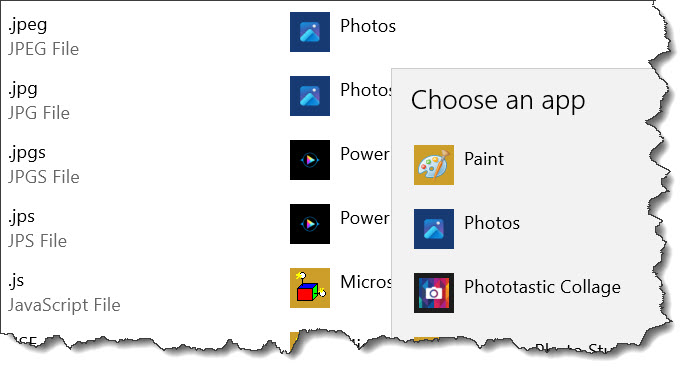Scroll down and click Choose default apps by file type. Scroll down in the lengthy list that opens until you see your file type (like JPEG File) in the left column. Click the Photos icon to the right, then Photos again in the window that opens, like in the above image. It will look like nothing has happened. Close the window and go back to QuickBooks. You should be able to upload receipts with the file extension now. Repeat this process for any file type you use to save documents.